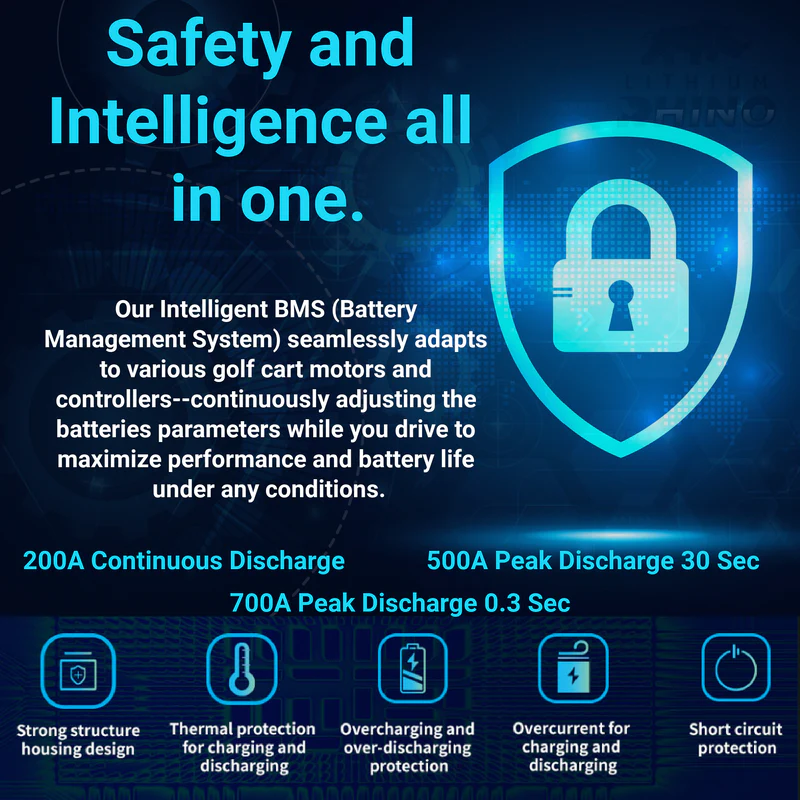 Includes everything you need to convert to high-performing lithium that outlasts all others with a 6000+ charge cycle life and robust 8-year warranty. No more water fills and decreasing performance- just zero maintenance, massive drive range, and 4-hour super-fast charging speed with our strongest-in-class 25-amp smart charger.